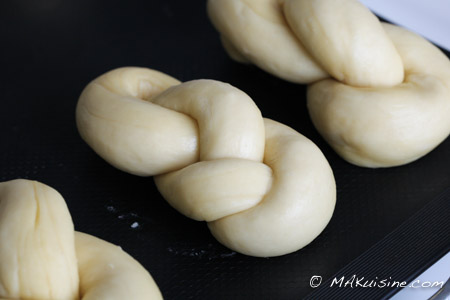 Voici la partie qui pourrait semble délicate mais après 2 petits pains vous arriverez à bien les former. N'hésitez pas à aller voir la recette originale pour les explications de tressage.